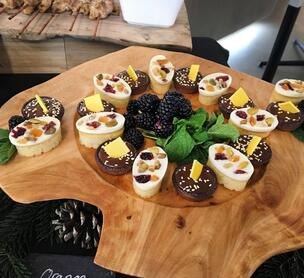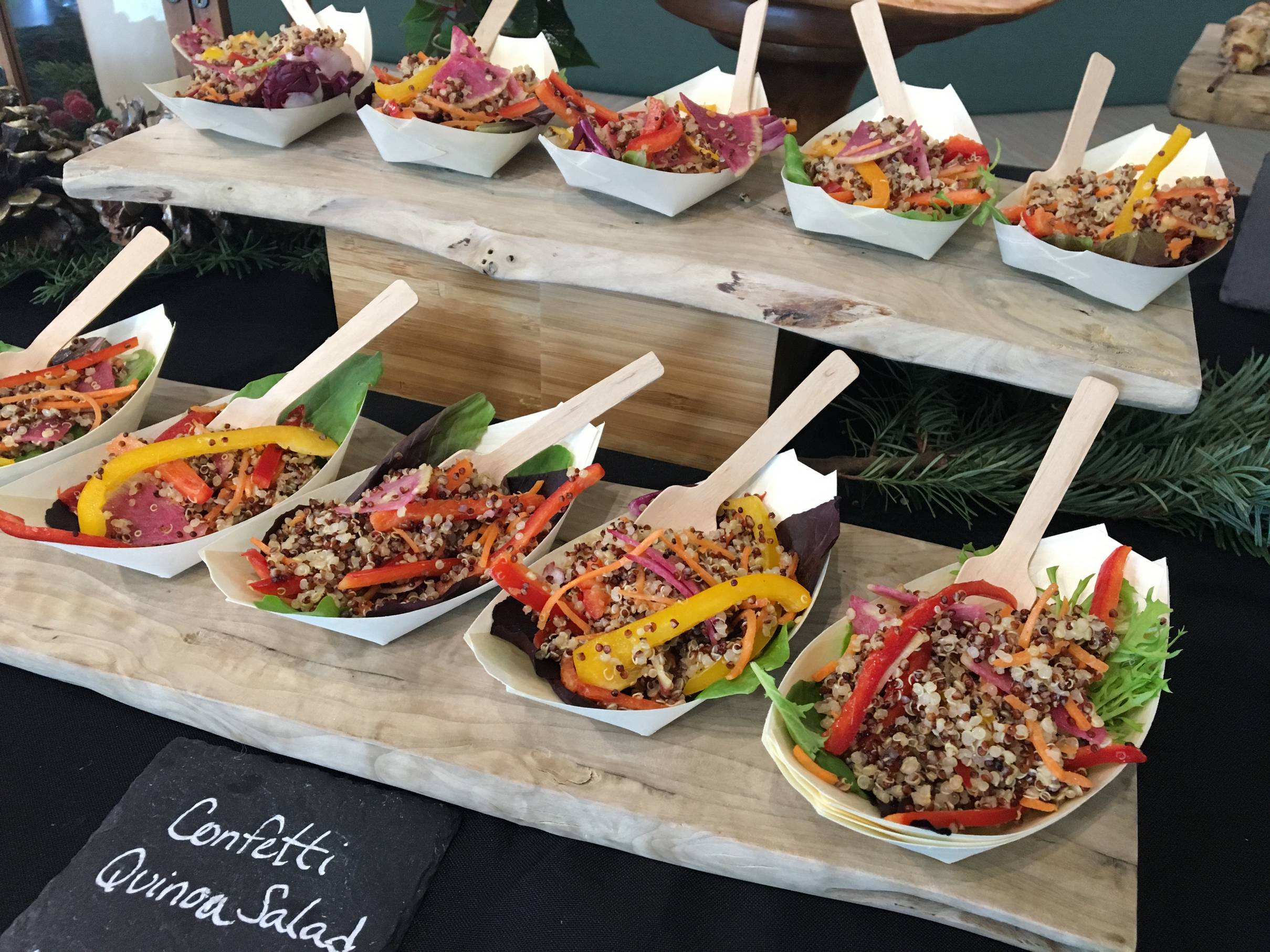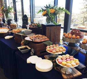 We cater breakfasts, lunches, snacks, receptions and dinners. Min order is 20 people, max 3500+.