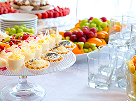 Over 9 years of experience. We cater breakfasts, lunches, snacks, receptions and dinners. Min order is 20 people, max 3500+.